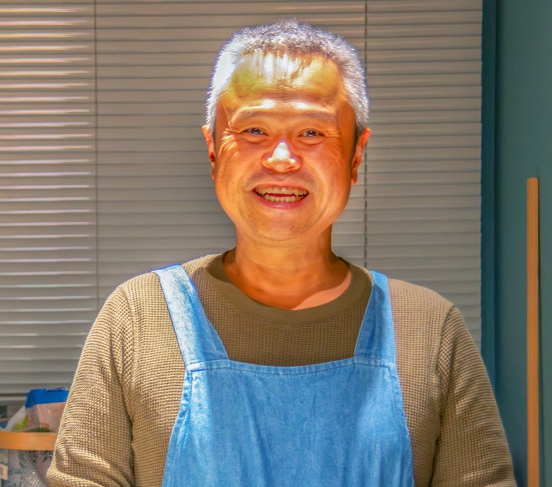 博多南駅前ビルの2階、カフェるるんで笑顔でおいしい料理を作ってくれる寿代さん。